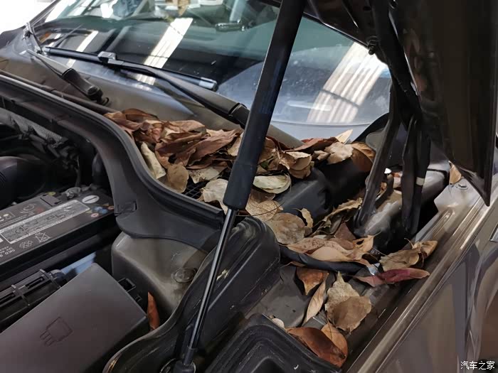 不忍目睹,维修人员提醒要及时清理树叶,不然可能会堵塞排水管道,雨水会流入车内。