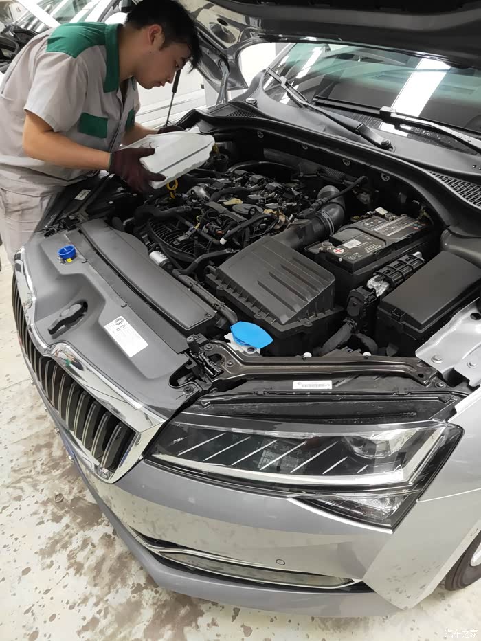 保养结束签字完成,用信封装好此次保养清单交给车主,保养完成。这就是这次首保的情况,下面是重点了,不少论坛的19款车主首保使用的是0w-20的机油,我这次去首保,开始登记时便和售后讲我这是DPL发动机,应该使用0W-20的机油,售后查看发动机对我说,机油盖没有标识,还是使用5W-40的机油,我又反复和售后确认,答复目前华东大区斯柯达4s店没有得到通知使用0w-20机油,除非机油盖标识机油种类,否则还是使用5W-40的机油,售后反复讲,19款发动机只要符合VW50800标准的机油就可以用,店里也没有0W-20的机油。我再三查看保养手册,没有发现具体要求,同时还电话上汽大众4008201111咨询,答复系统查询,目前上汽大众斯柯达使用机油是5w30以上,推荐5W40,没有DPL发动机更换0W-20通知,让我按照4S店标准更换,真是弄不懂了,又不能总僵持着,再加上本地就一家4S店,只能暂时同意更换。