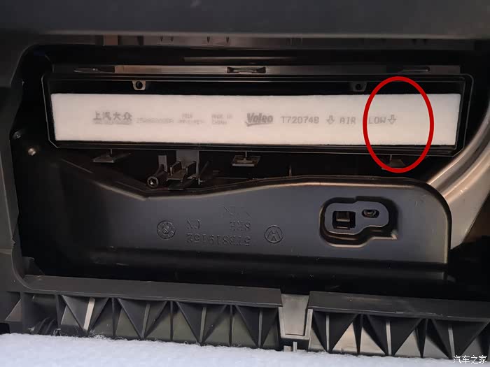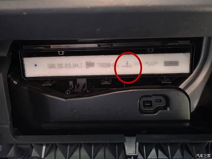 这个盖板的后面就是空调滤芯的家了,拿掉盖板就可以了,取下的时候要注意,我标注的地方,要从两片中间轻轻的扣。