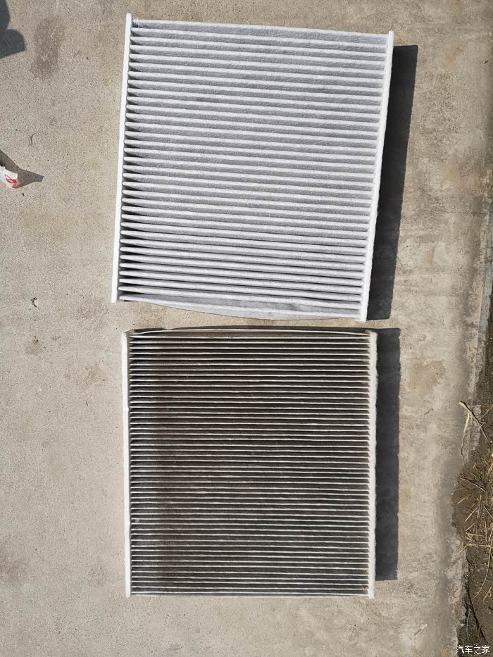 新旧对比下,确实应该更换了,太脏了,看来一年得换两次。 这个不能省,关系到车内的空气质量。