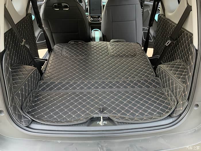 不到100块的后备箱垫还是挺香的。也可以看到,后排放下特别宽敞,但这是有代价的!开车右腿伸不直......一定需要放下后排的宝宝,可以把头枕去掉,会宽松些。