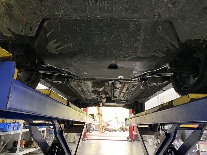 底盘的做工也是非常的到位的,发动机底部还有护板,安全性做的很到位。