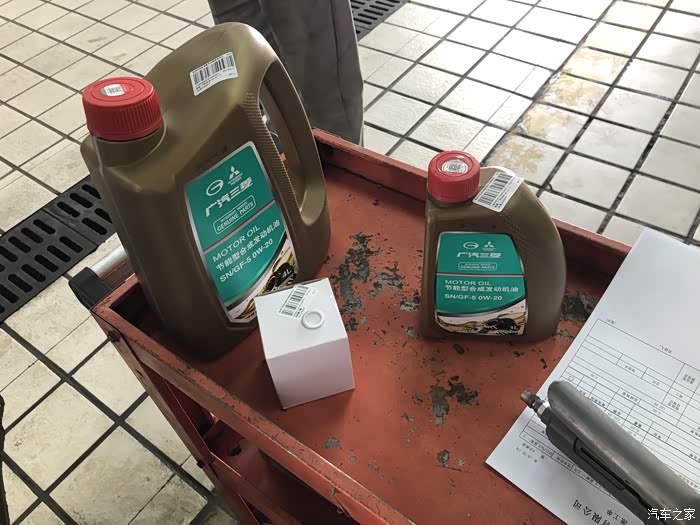 一大一小,0W -20合成机油,三菱奕歌,要加4.5L,所以这得用一大一小,小瓶用一半,再加上机滤,准备给我的小奕换上了!