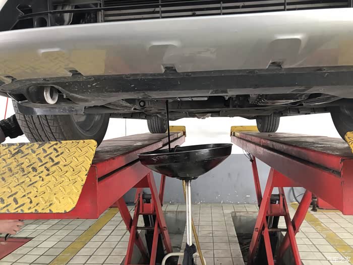 把车缓缓升级,准备放机油了,这底盘看着还算平整,这可是1.6吨的大家伙!