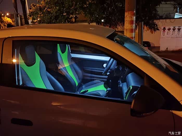 大灯是卤素的,晚上看黄黄的也不是很亮,换个稍微不黄的卤素灯!