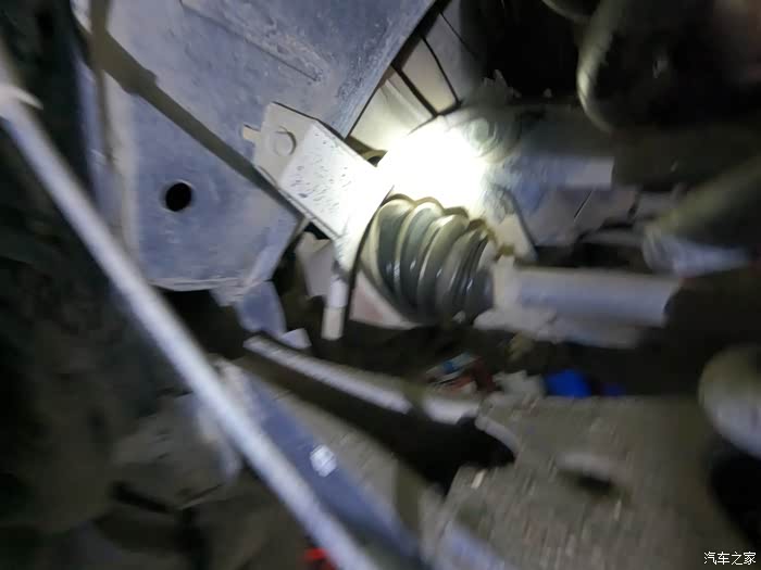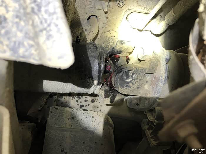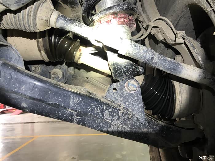 这个传动轴啊…唉,好多车友还不知道要养护这里吧…好多人也会告诉你这玩意儿终身免维护,但我觉得吧,还是可以弄一弄,买把注油枪,按手册选对油脂标号,每次保养加点儿就行。我这距离上次注油才8000公里,前轴还好,后轴这挤出来的旧油,各位自行定夺!