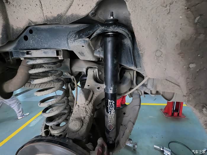 前悬挂。(自从换了避震,前避震的限位块就再也没碰到过了!之前最容易触底的那个点位都生锈了!)