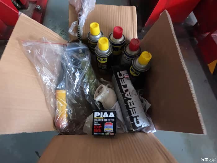 自带的材料有这些。除锈剂,矽质保护剂,机滤,注油枪,个护耗材