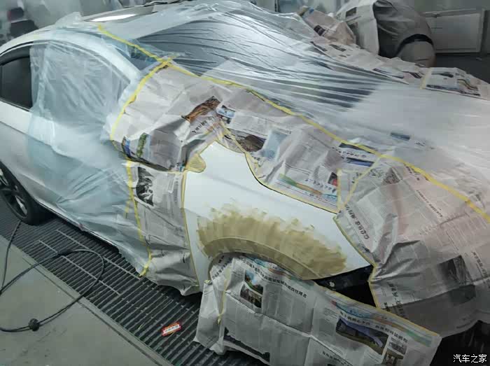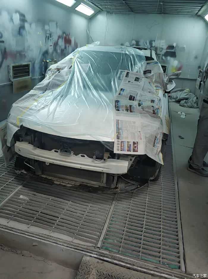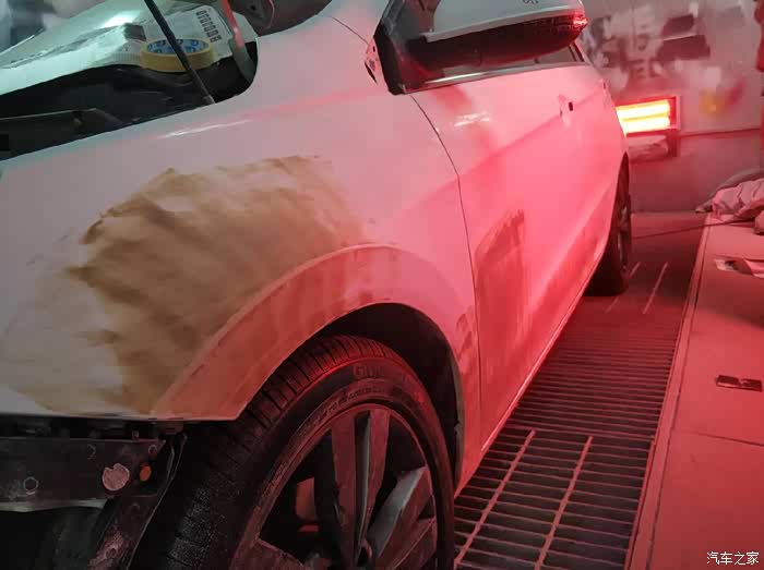 钣金应该是提前就做好了,我去提车的时候刚开始准备做喷漆,闲着也是没事就在旁边观看了会技术还是不错的。批完腻子准备做喷漆。