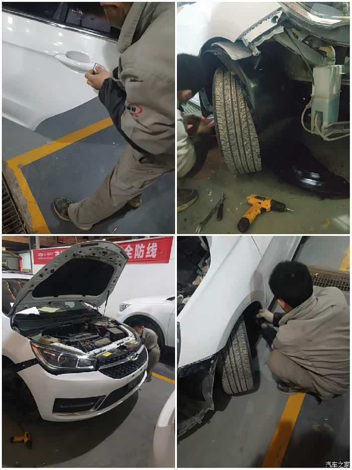 来就是左右两边钣金喷漆换个保险杠,后来跟维修的主管争取了右前轮的内衬更换四轮定位跟动平衡!