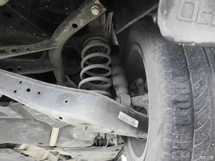 举车到位停止后,我顺便到车底下检查一下底盘。左后减震器检查正常没有出现漏油的情况。