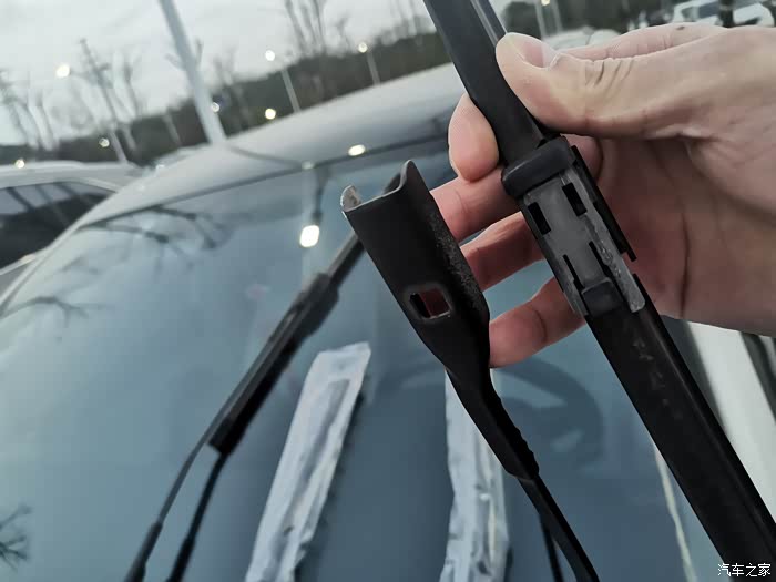 然后怎么扯出来的,然后就怎么插进去,按照这个方法,接下来更换副雨刮片。