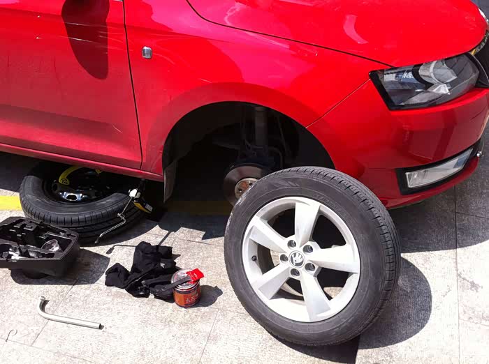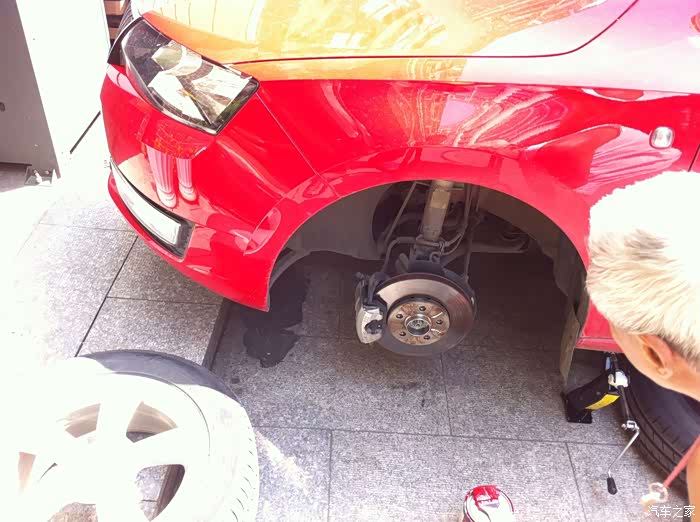 新刷的红漆与原车车身颜色相仿,从此做一个高调的鼓刹