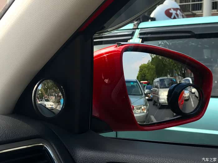 四个小圆镜可以确保后视镜的部分盲区,B柱同样也有两个是给后排人下车开门前观察后方车辆用的