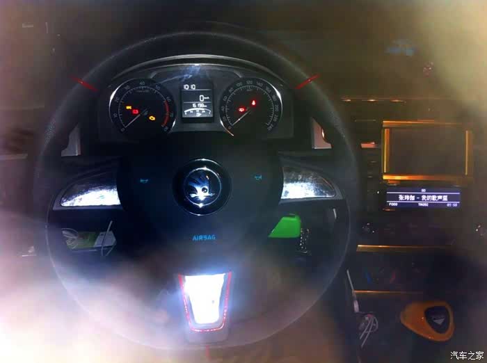 方向盘亮片是不锈钢碗剪出来的,方向盘上的红线是红色油漆点出来的