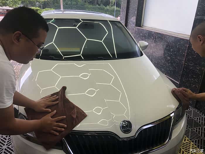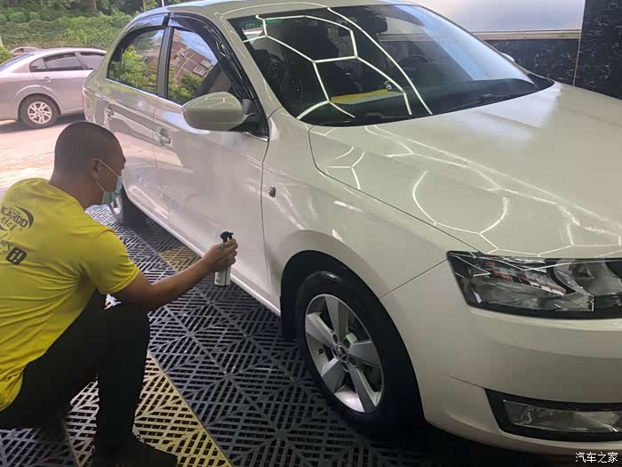 最后再用镀膜剂在车漆表面喷洒均匀,用毛巾抛光后就大功告成了。