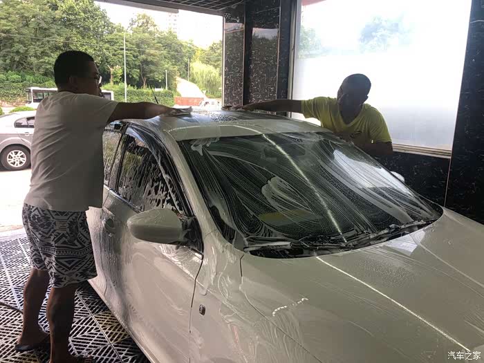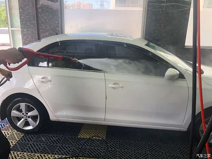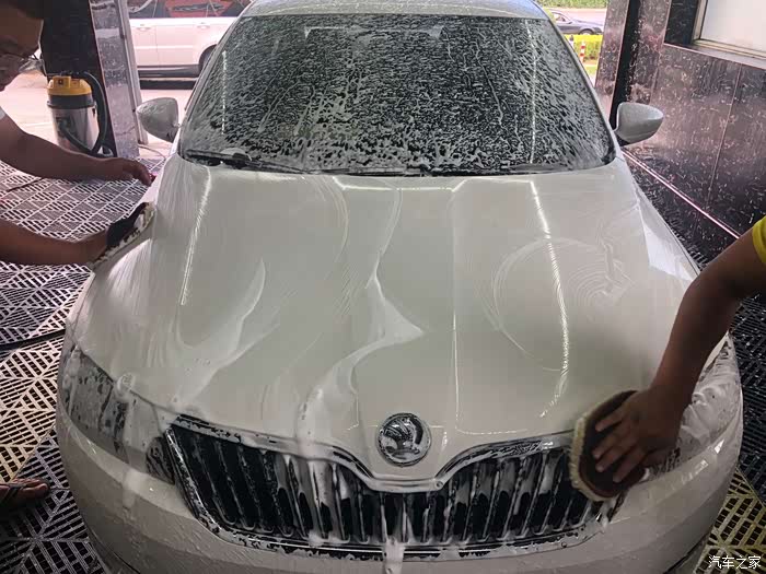 下一步就是清洗车身,先把车身冲一遍,然后再用洗车液彻底清洗车身表面。