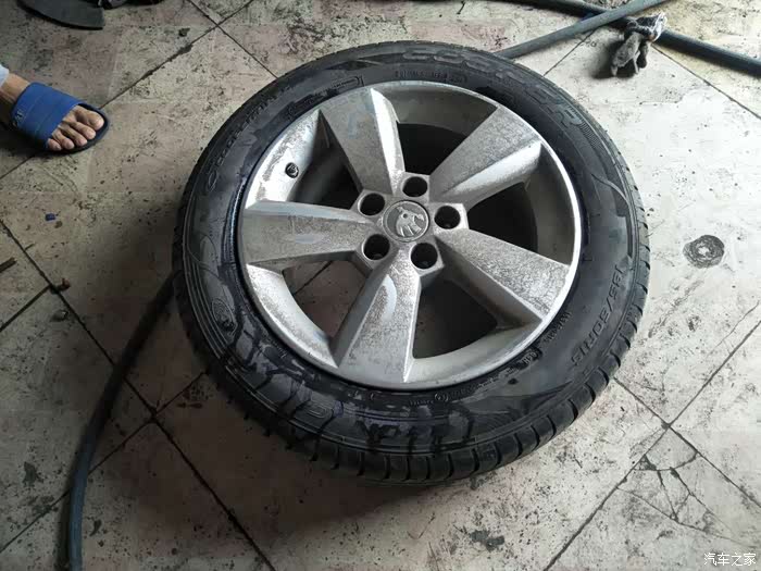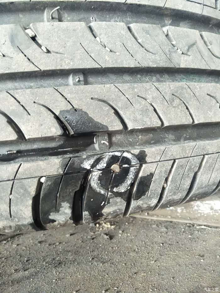 轮胎去年更换的,今年第一次被扎,有点心疼啊
