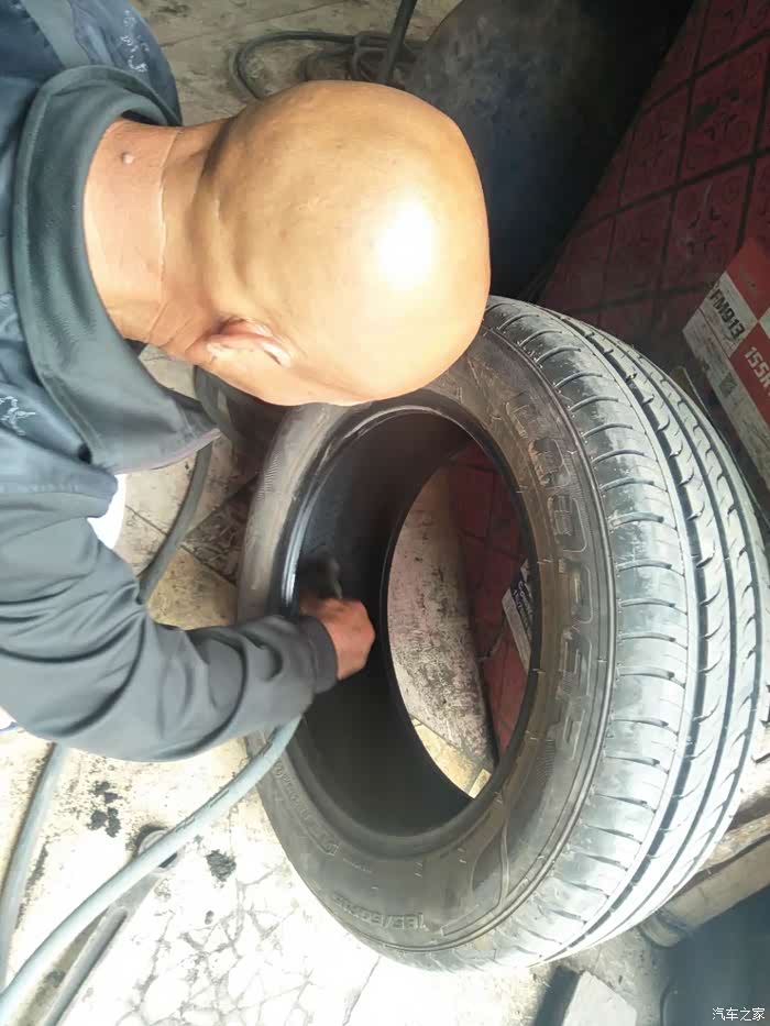 慢跑气的状况有三周了,今天来到路边的补胎店,先看看啥情况