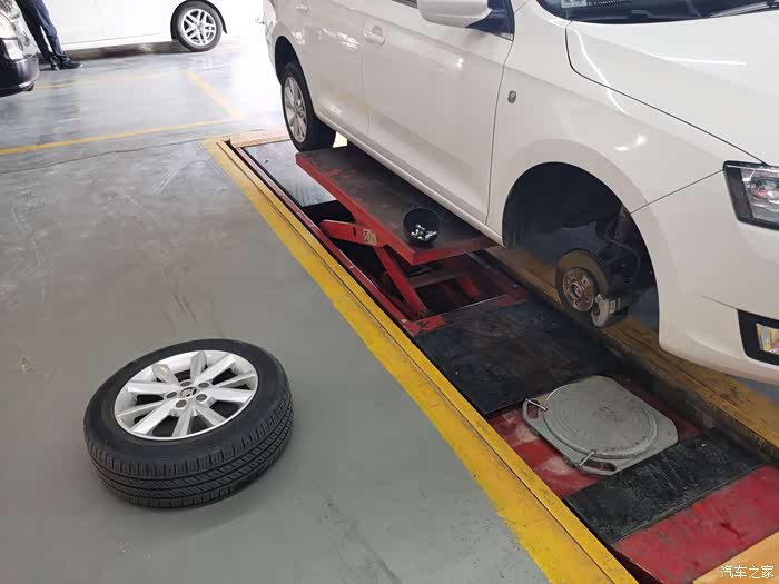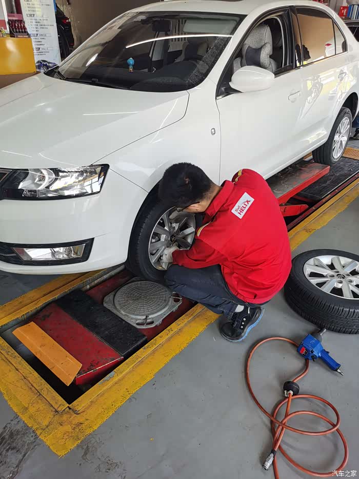 师傅在下轮胎了,看了下途虎的介绍,这个师傅的等级是见习技师,换轮胎这种活应该很简单吧
