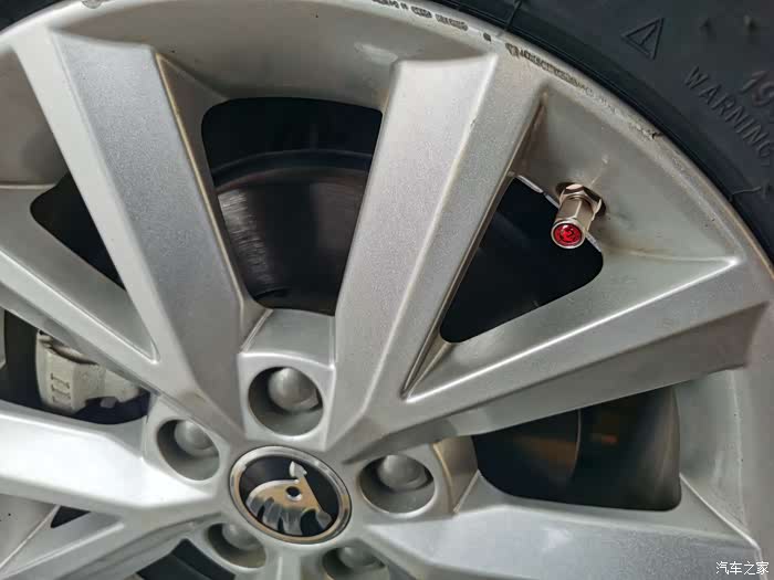 轮胎安装完,看了下送的气门嘴,原车的气门嘴帽子是塑料盖,这下换成了金属质感的