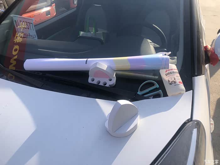 己操作有点困难,很考验技术,尤其是这种大面积的,一步一步的来,不能着急,先把车身喷上泡沫水,再把车贴贴上,再用刮板慢慢把里面的气泡刮出来。