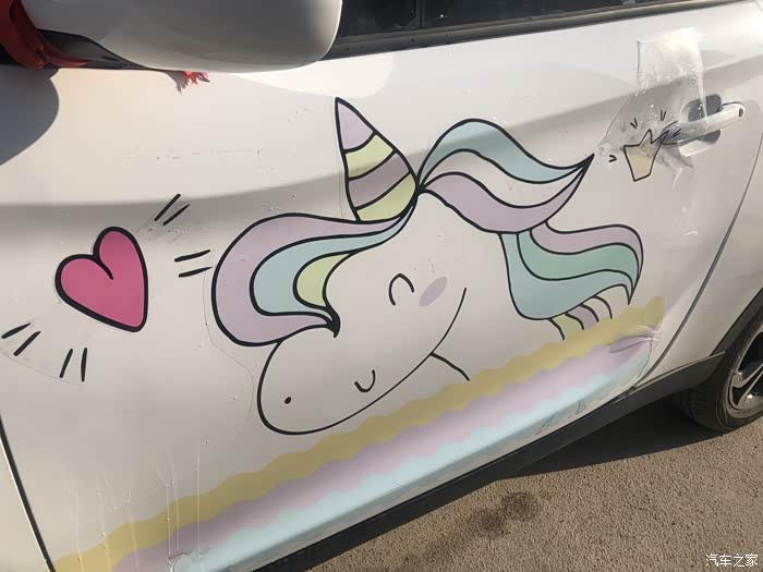选车贴的时候有很对,比如凯蒂猫啊,比卡丘啊,很多样子,最后我选了我最喜欢的独角兽。