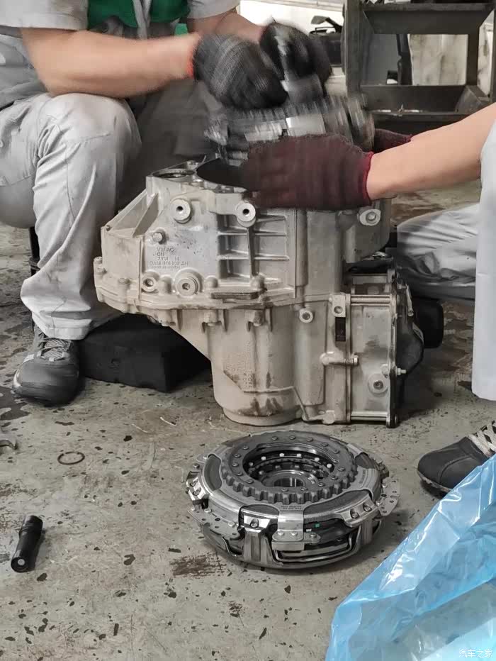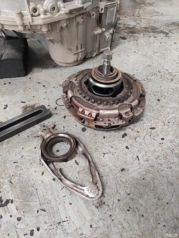 下来了,离合器因为裸露,生锈也挺严重的,所以干式双离合千万别涉水
