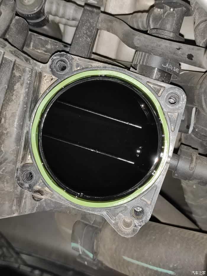 节气门下方,反正也看不懂好坏,全是油,其它车节气门到进气门中间都是没油的,搞不明白这设计