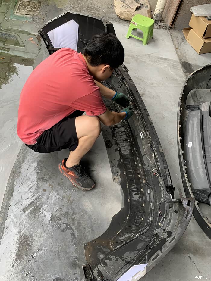 论坛看到宁波一车友改装的后保和尾喉挺不错,有点动心了。我的大灰熊也好久没折腾了,于是联系上车友和改装店老板,咨询商谈好改装方案与日期,定购的尾喉配件倒手后,接下来说干就干,直奔改装店请老板动手了。