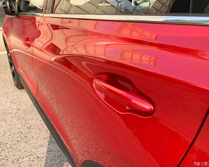 手机随手拍的,效果很炫酷,大红色的车身,黑色的车顶,黑红搭配很时尚,很醒目