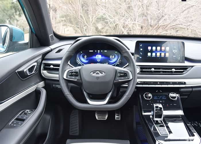内饰造型和瑞虎八一样,色彩变了变,不过用 了很时髦的黑色顶,仪表板和门板拼接的色彩搭配是这款车的特点