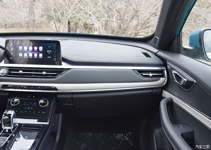 副仪表盖板上配有无线充电,漏斗形设计,也是为了手机仿飞出设计