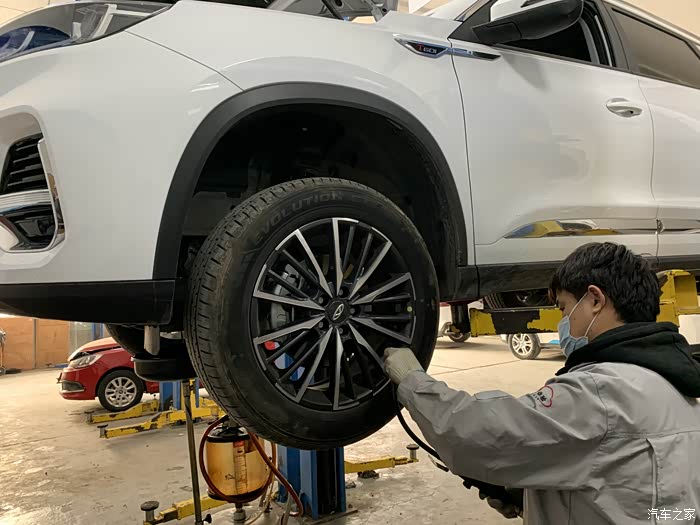 把车子升起来然后趁着放油的时候检查各个轮胎的胎压。