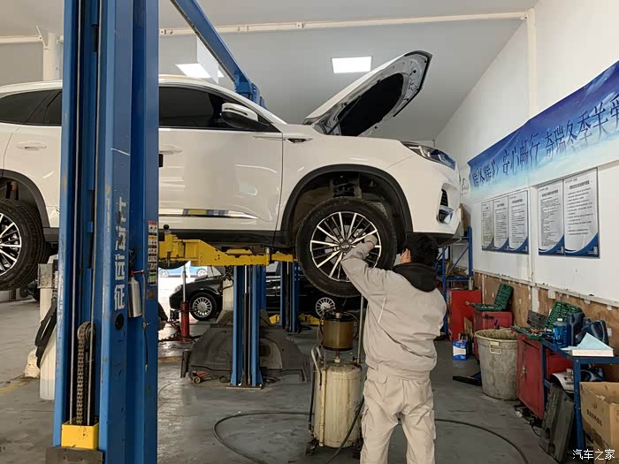 今天趁着手里闲暇时间比较多,翻到手机有前几天保养的图片顺便给各位车友做一期保养作业。提车也有一段时间了,随着一趟出差,终于车子已经到了首次保养的日期了,本着爱车的原则第二天趁着有时间直接把车开到了4s店,因为出差在北京所以直接去了北京的4S店,发现奇瑞的售后还是不错的,一进去就有前台过来询问,然后让我到维修保养的地方休息,因为第一次保养所以我还是商量了一下进入车间对车子进行了一番拍摄。
