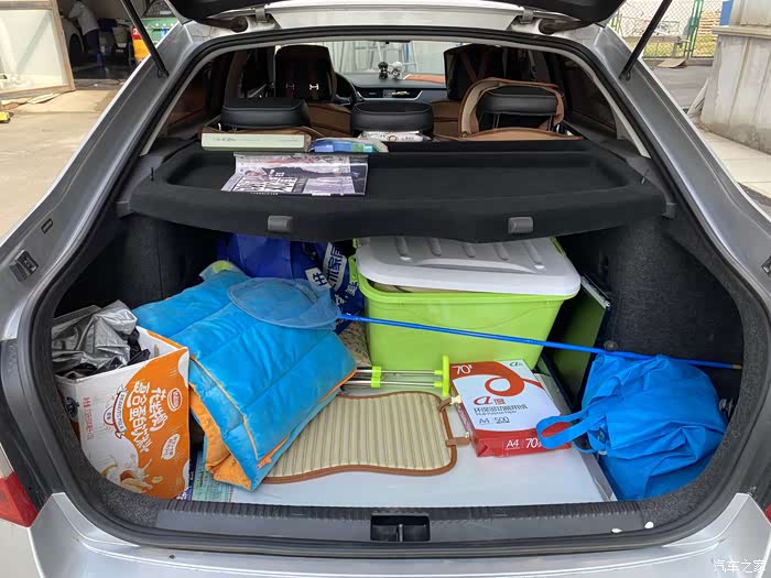 这后备箱够大吧,你就说这里这东西多不多,大箱小箱的,那还没装满呢