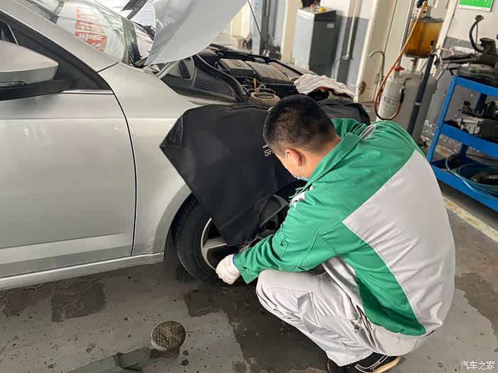 接下来是对4个轮胎进行胎压的检测,每一项检查的细心和用心的确是让我有点小感动。因为这样的保养流程是我首保就开始进行,每一次进厂都没有改变过,检测的项目再不断更新更加,却从未减少!