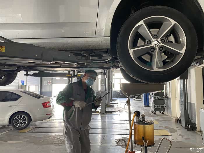 开始换机油了。今天可能是因为假期的缘故,进店保养的人还不少,我和他们聊天中得知,他们这还是进行错峰安排时间了呢,因为不能扎堆,不然估计会更多。因为我们当地的客户基本上都有店里的网络的联系码,关注以后我们都是先沟通进行线上预约,如果预约人数到了,当天就不会再进行安排了,这个做法很值得赞扬。