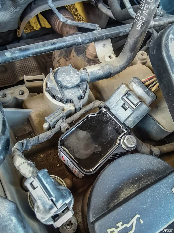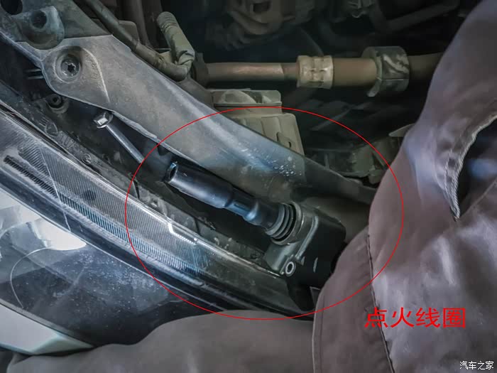 新的点火线圈就是打开发动机盖,正对发动机的左手第一个,那个颜色很亮的那只,因为是新换的了。老的那个可能有油污,比如加机油时不小心滴上去了,都有可能。