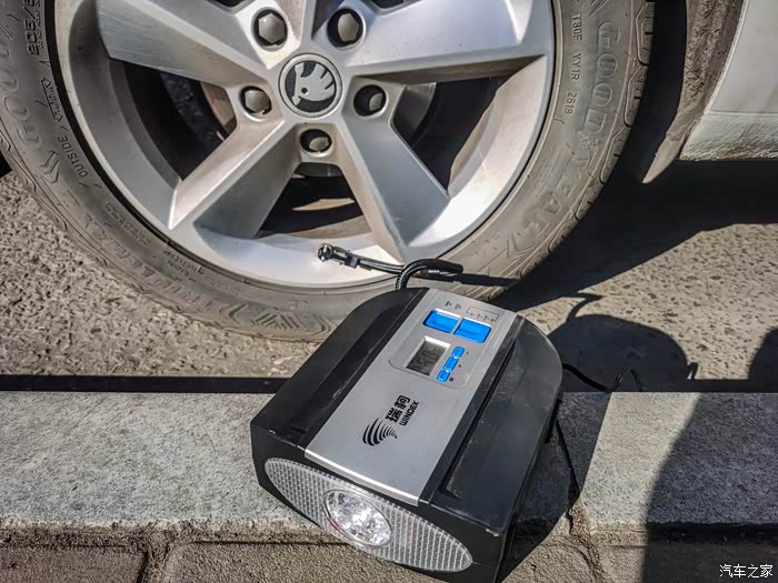 换了点火线圈后,我又自己对轮胎进行了充气,毕竟行驶了那么多公里,还没有补充过胎压。我用打气泵,设定好2.5BAR开始充气,一会的功夫,就对四只轮胎补满了气,这也是标准胎压,如果你不知道打几个气,就2.5就好了呀