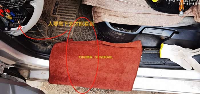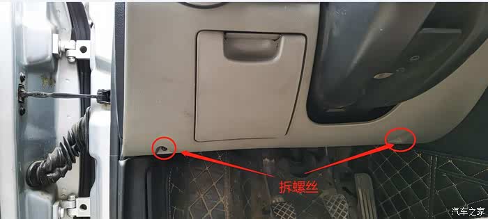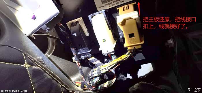 我们现在看看主板在哪里。侧身弯下腰,头在脚垫位置,往上看就能看到主板及接口。
