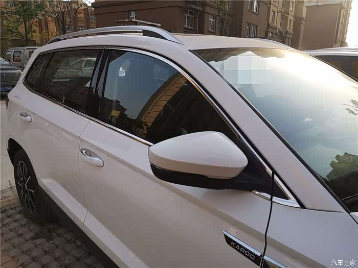 进行对比下,说真的,还是贴了后要更加大气,真想不到,为什么优享版要把这个给去掉,厂家也是省到了极限了,也许是为了让你上豪华版,现在很多国产车都是标配了。厂商的心里咱是摸不透,但是看着我的小柯亮晶晶,心里还是挺开心的。