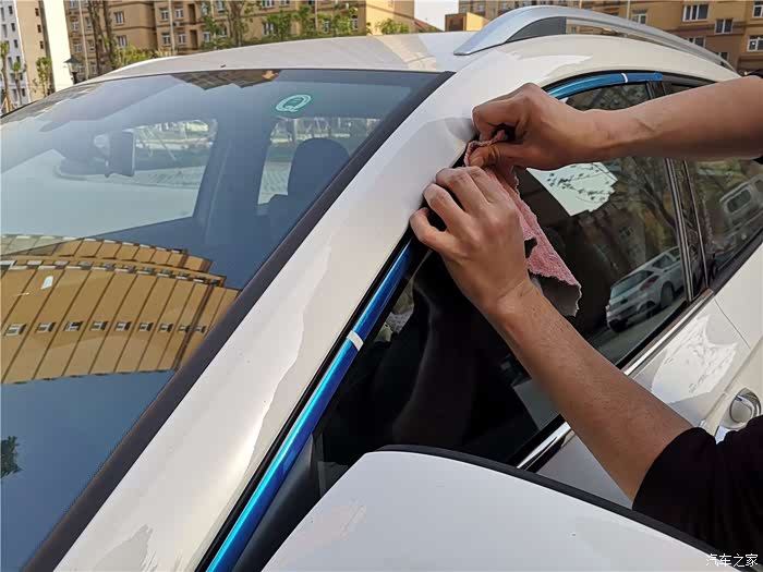 先用湿毛巾把车窗亮条擦试一遍,再用干的毛巾擦干,否则影响3M胶的使用,导致粘不牢。