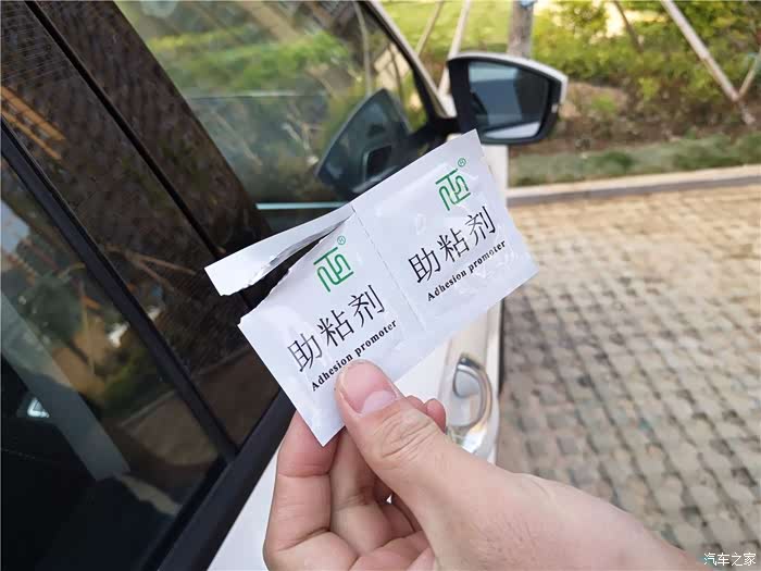 送了助粘剂,在粘贴前,用助粘剂擦试一遍,但要停15秒后再粘贴亮条。