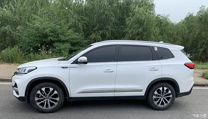 虎8最美的角度是侧面,因为修长的腰身,18寸的轮毂,整体看起来很修长,侧面宽面简约,有轻微的肌肉感,线条简约。