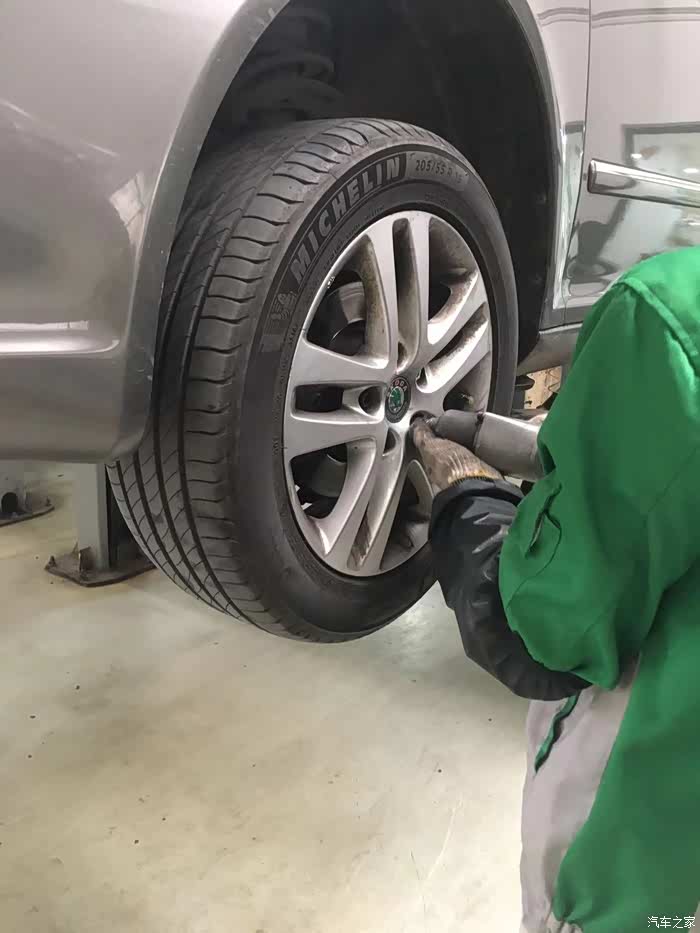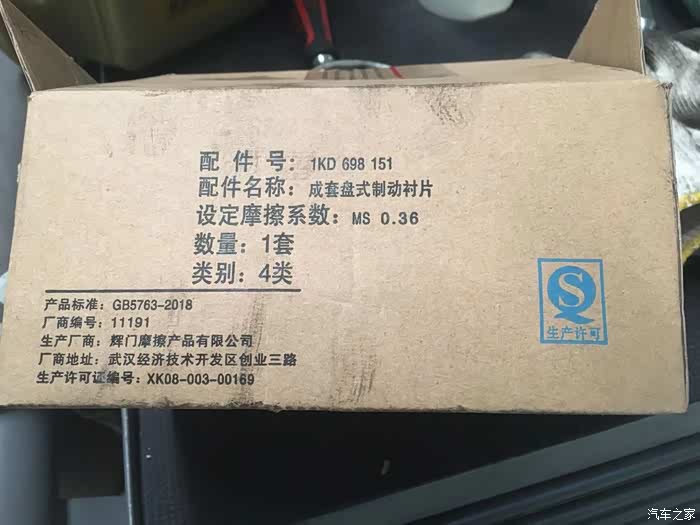 保养技师去仓库领新的原装刹车片,图为新刹车片的包装盒