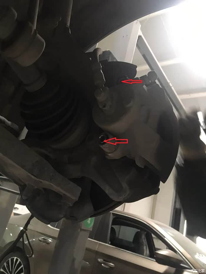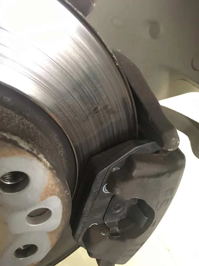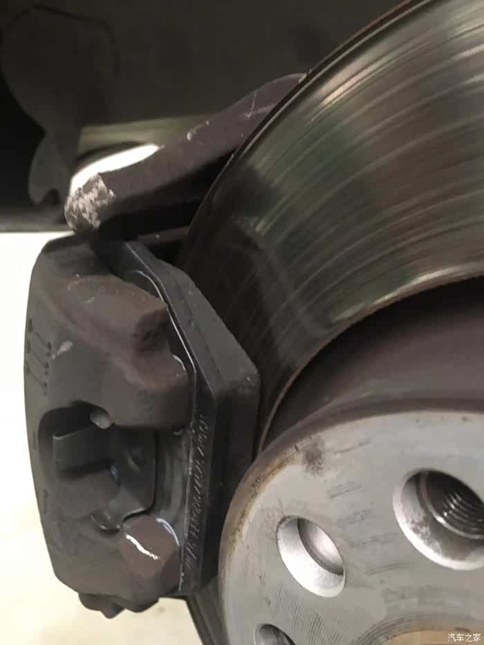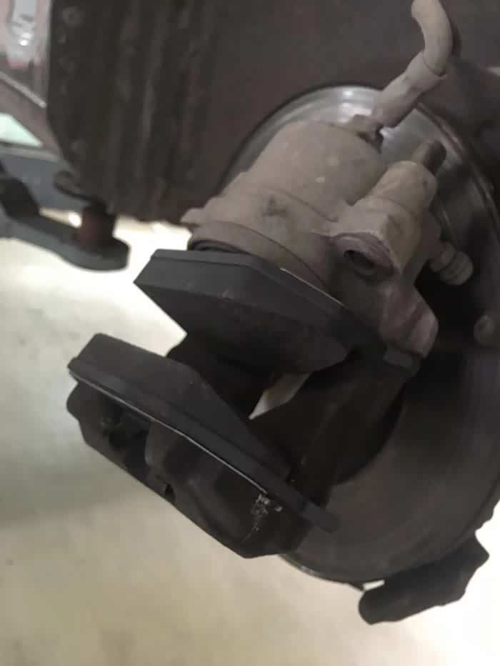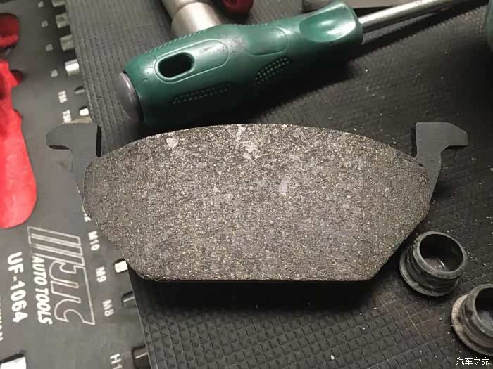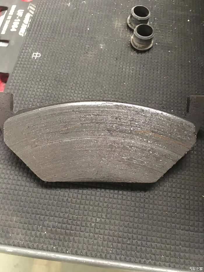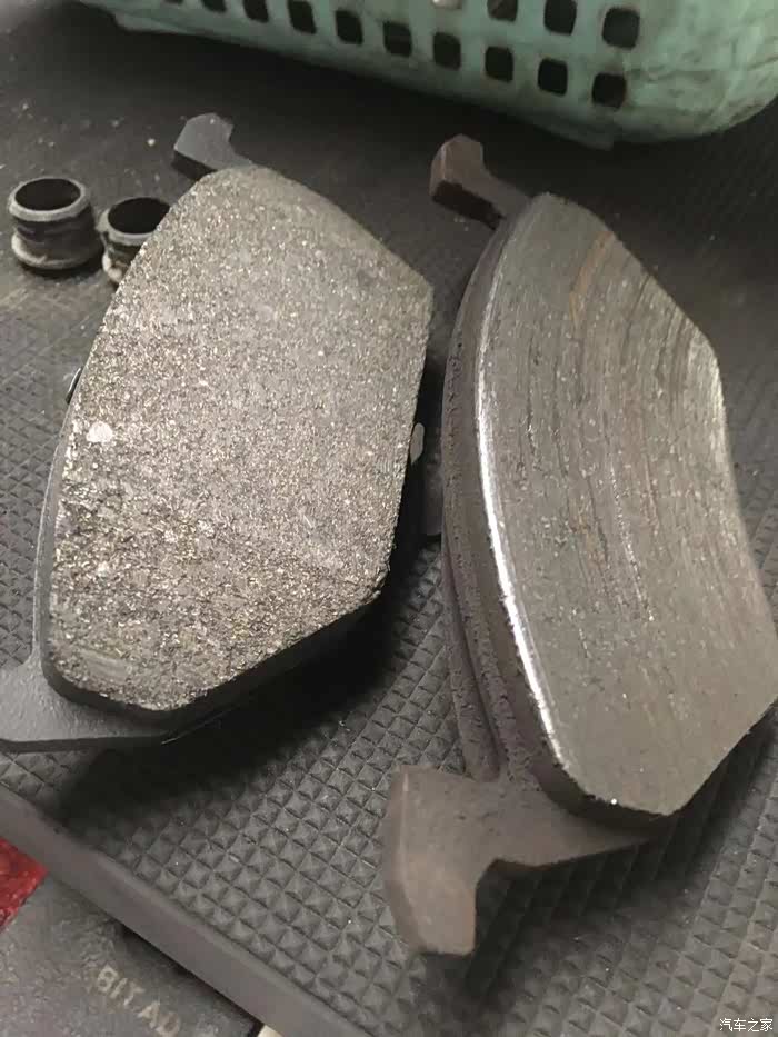 从刹车装置的卡槽中卸下旧刹车片,磨损比较严重了