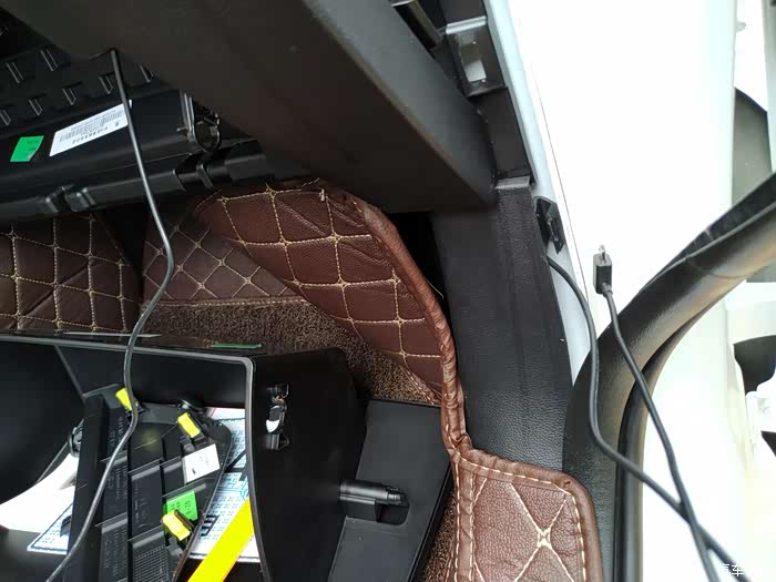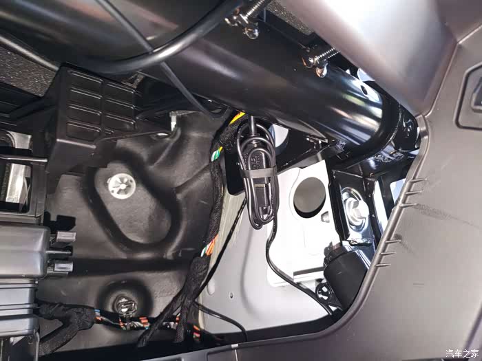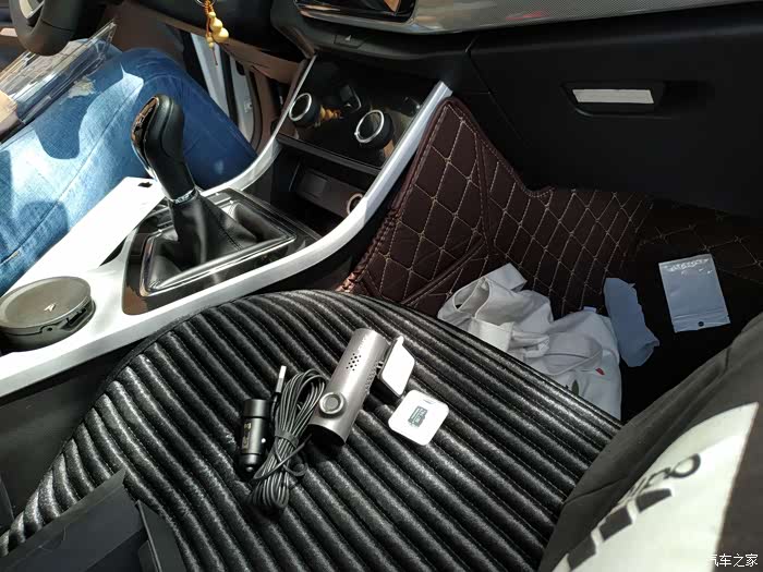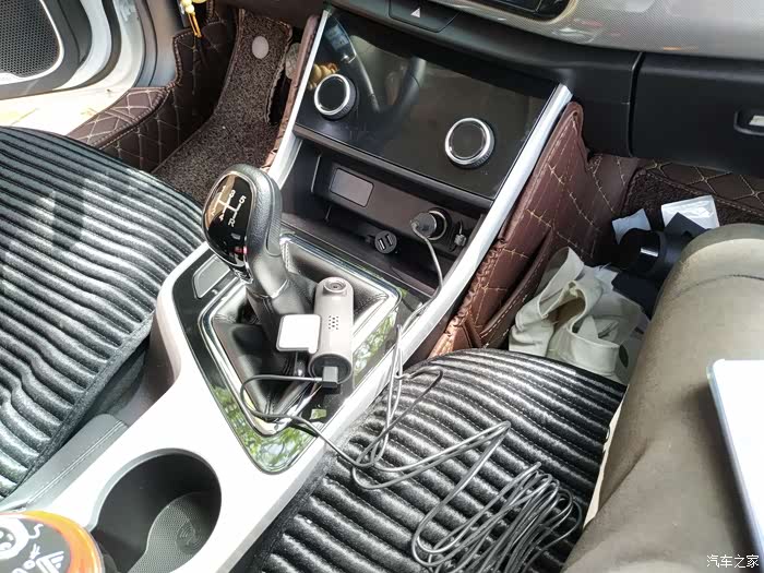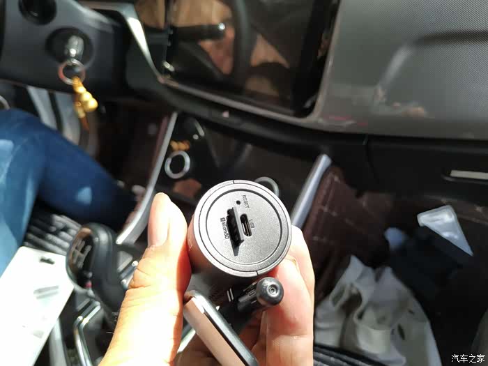记录仪的电源线,记录仪端头,从储物箱侧的中控台内穿过。