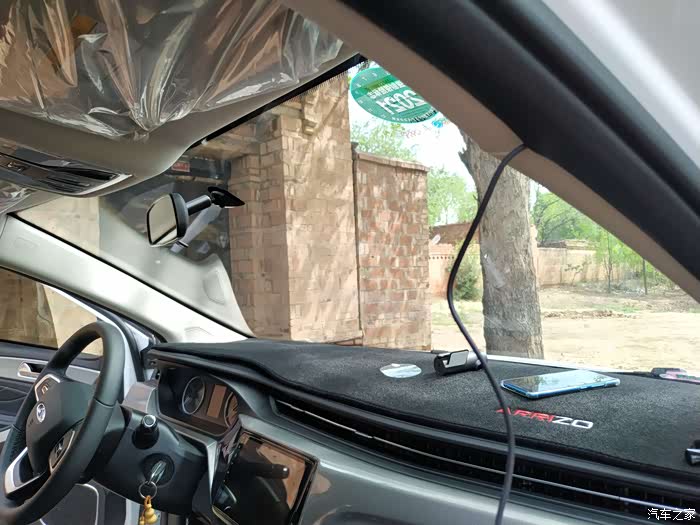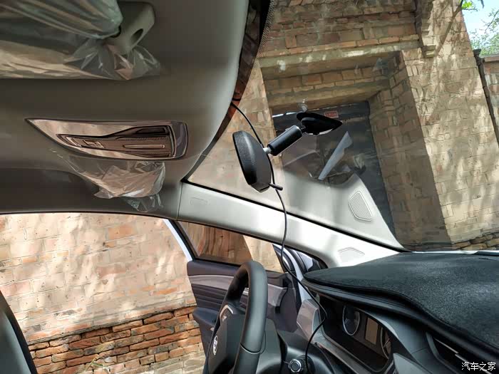 然后就可以上下调整记录仪,找个合适视线固定好就算成功了。再把露出来的电源线,规整的塞到车顶装饰板内就完工了。