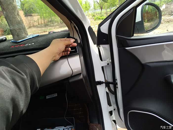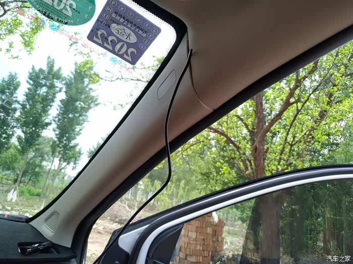 顺着这个缝隙把线顺到前挡风玻璃端。再就是电源线顺着顶板延伸到中间的位置就可以了。
